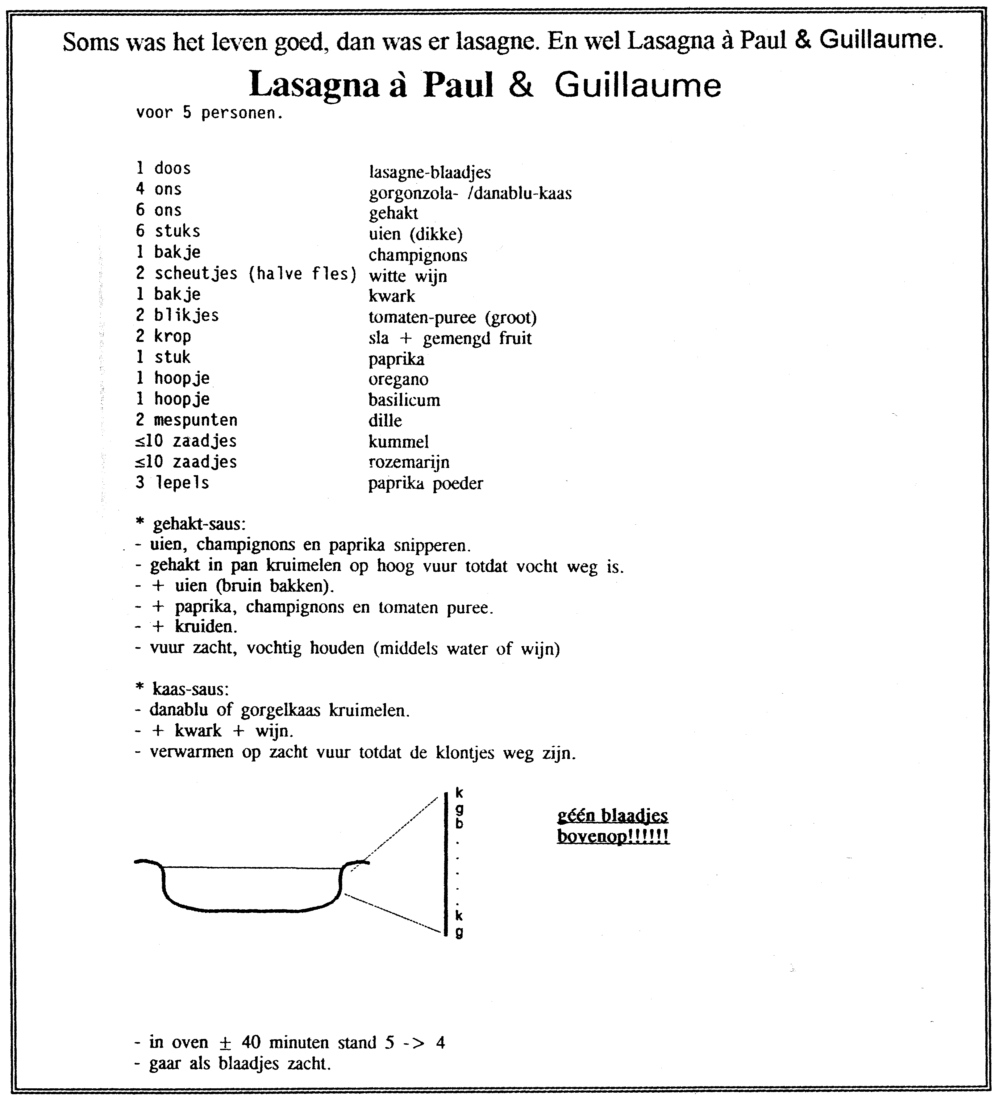 Dit is het enige echte recept van de Calslaan 3-1 Lasagna van Paul en William.
